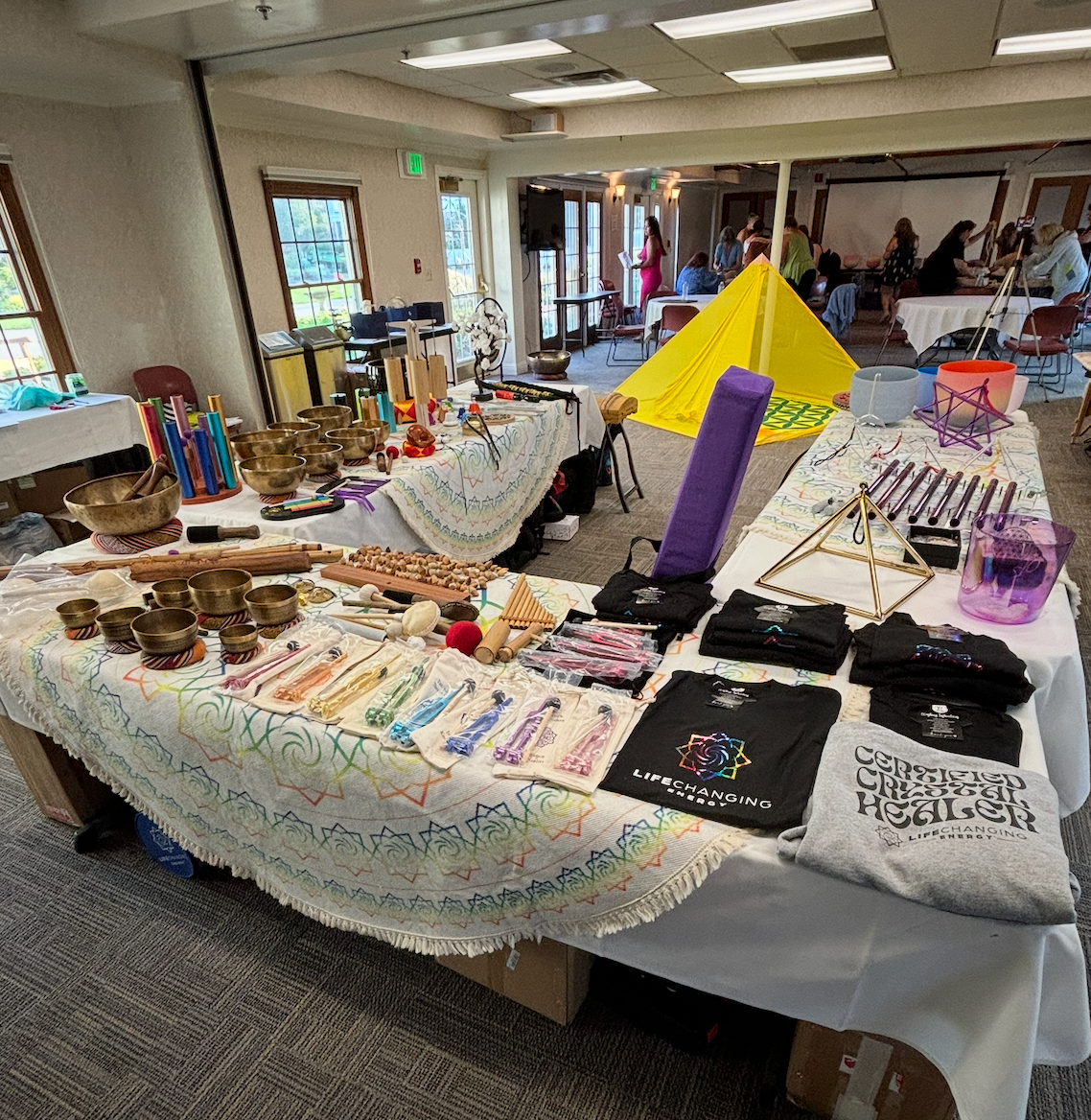 Explore, play, and connect with various healing instruments—crystal bowls, tuning forks, drums, and more.